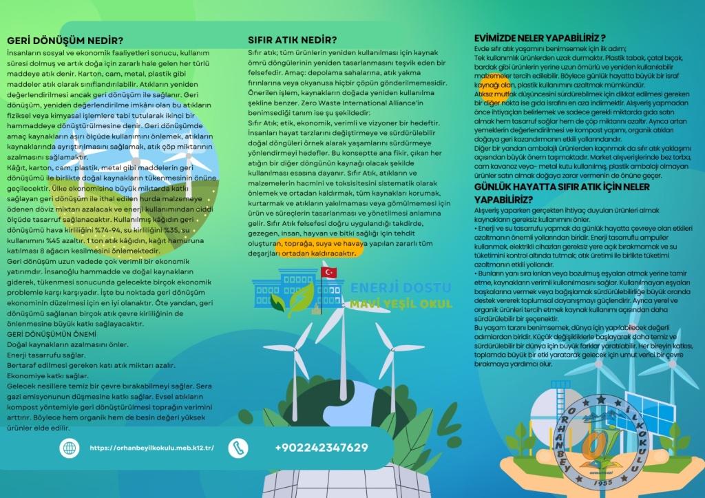Enerji Dostu Mavi Yeşil Okul Projesi kapsamında afiş ve broşürümüzü hazırlayan 2/C sınıfı öğretmeni Özgür ARSLAN'a emekleri için teşekkür ederiz.Hazırlanan bu afiş ve broşürleri dağıtan 4/B sınıfı ''Su Timi''nde görevli öğrencilerini tebrik eder, öğretmenimiz Necla AYDEMİR'e teşekkür ederiz.
