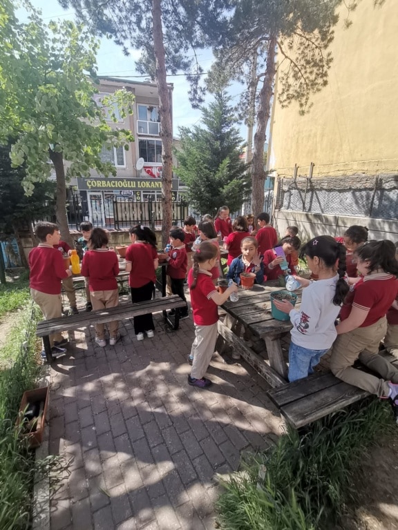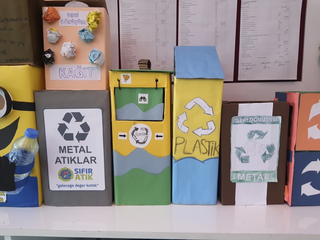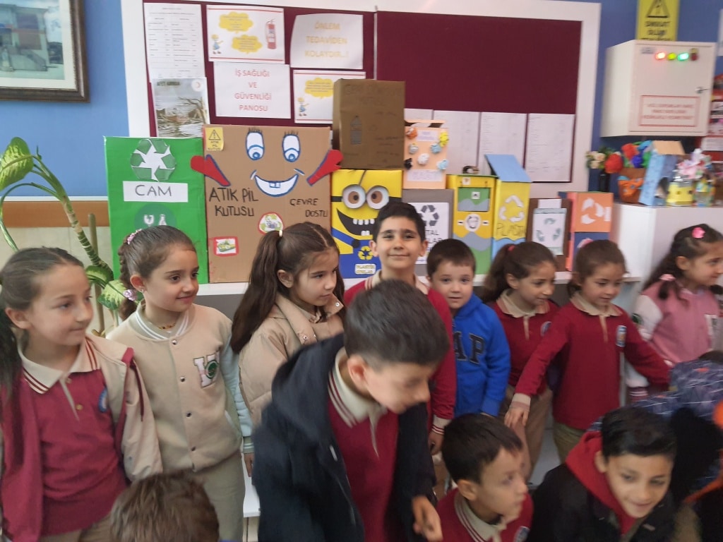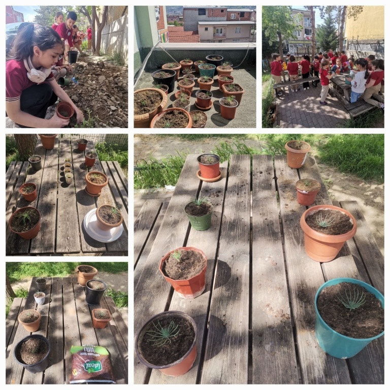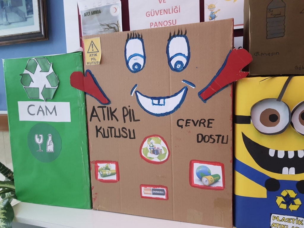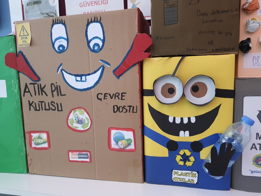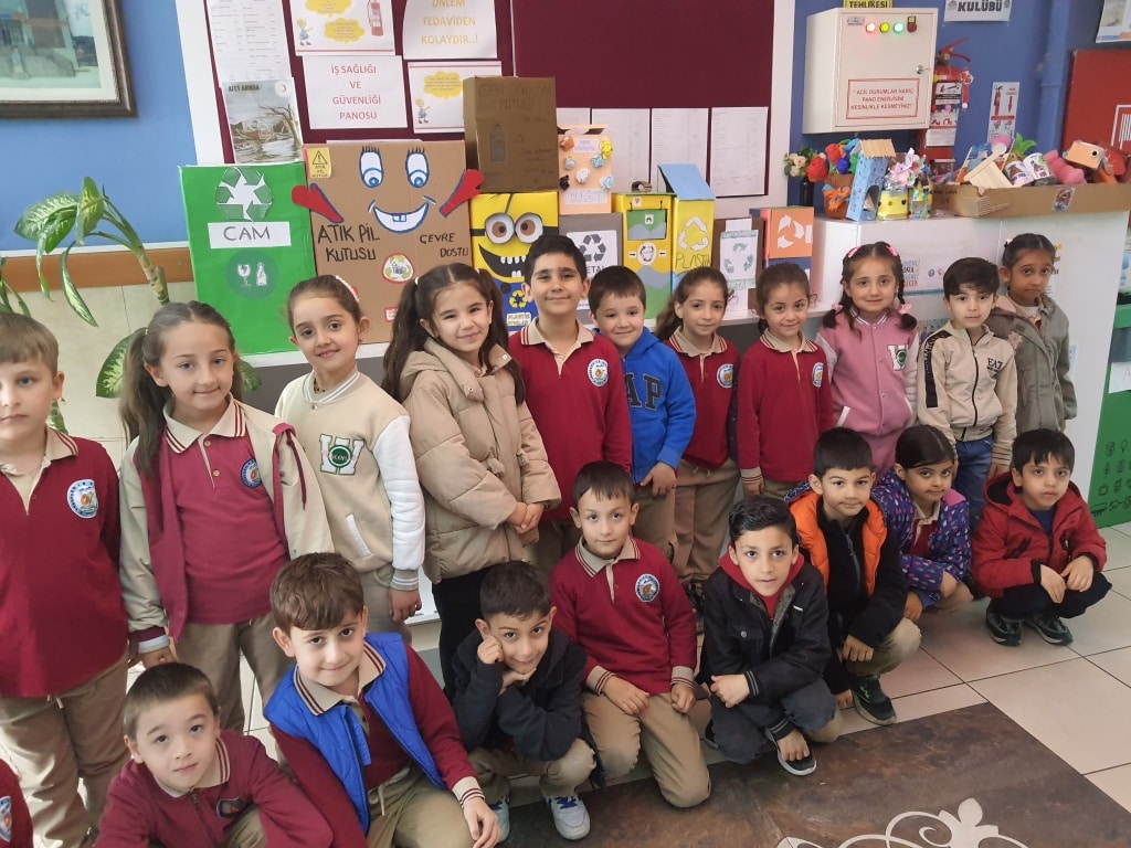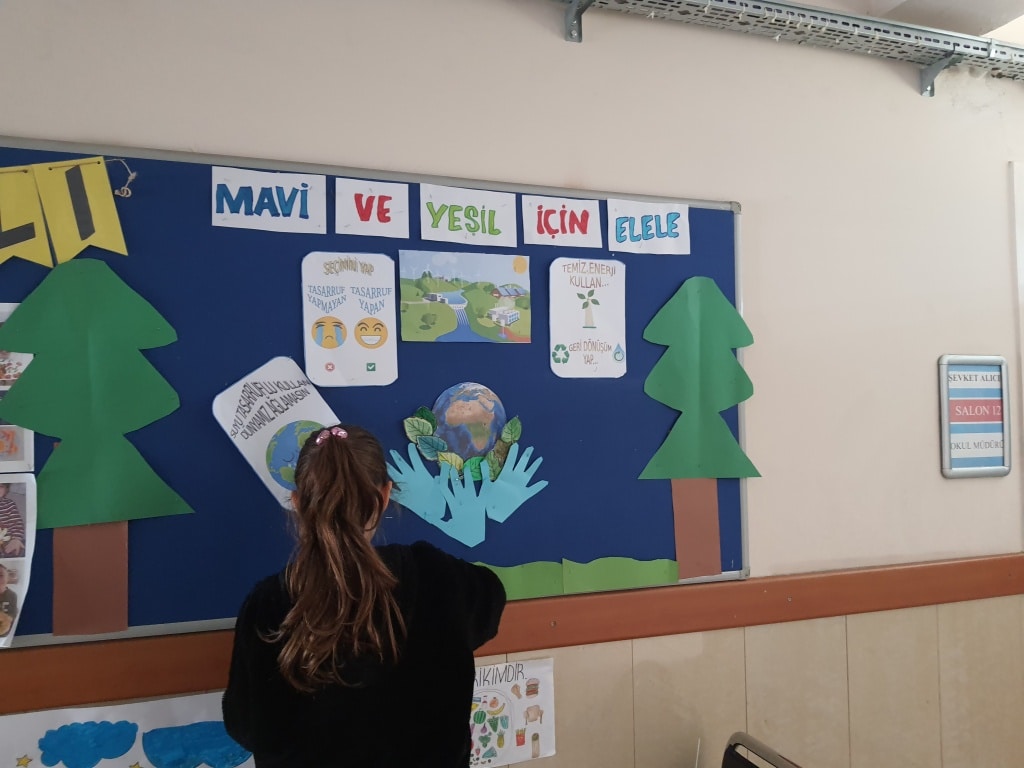 Enerji Dostu Mavi Yeşil Okul Projesi kapsamında okulumuz 2/D sınıfı çam fidanı yetiştirmek için kolları sıvadı.Tohumdan yetiştirdikleri fideleri saksılara aktararak büyümeye bıraktılar.1/B sınıfımız geri dönüşebilen atıklardan sıfır atık için kullanılmak üzere kutlar yaptılar.3/D sınıfımız ise pano çalışması yaparak katkıda bulundu. Projeye katılan tüm okulumuz öğretmen ve öğrencilerine çalışmalarında başarılar dileriz.